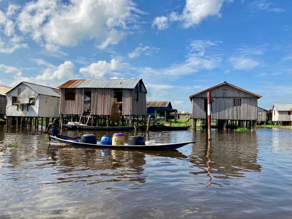 Ganvié, la famosa ‘Venecia Africana’, tiene su origen en una gran concentración de familias de pescadores de la etnia tofí que se refugiaron en el lago Nokoué en el S-XVIII huyendo del esclavismo. Actualmente se han formado ‘calles’ acuáticas donde la gente hace todas sus actividades.